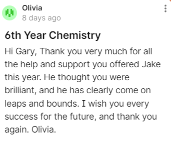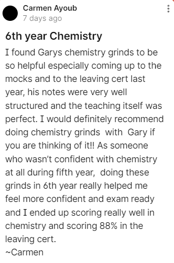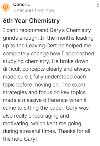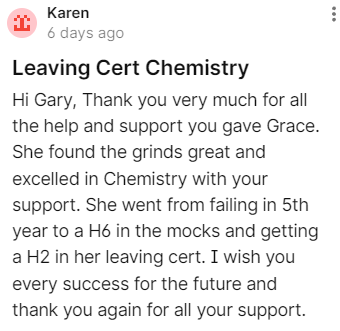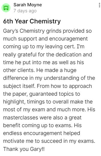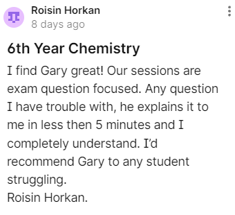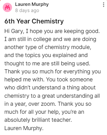 -Gary has extensive knowledge of the Leaving Cert Chemistry exam and how to achieve the top results.